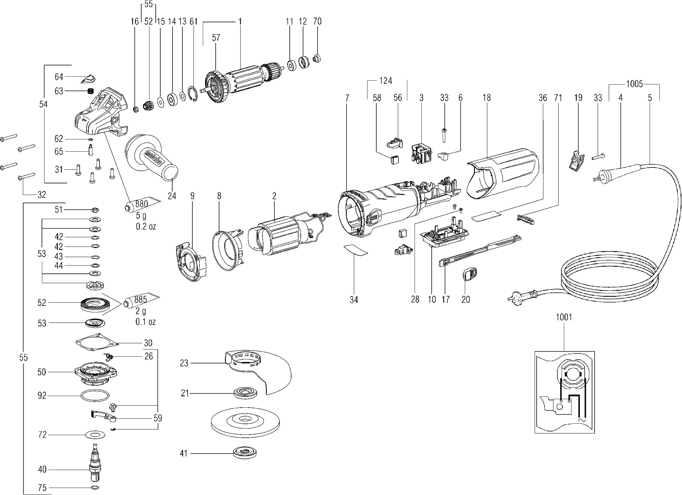Onderdelen lijst van de Metabo 00468001 ( WEV15-125QUICK )