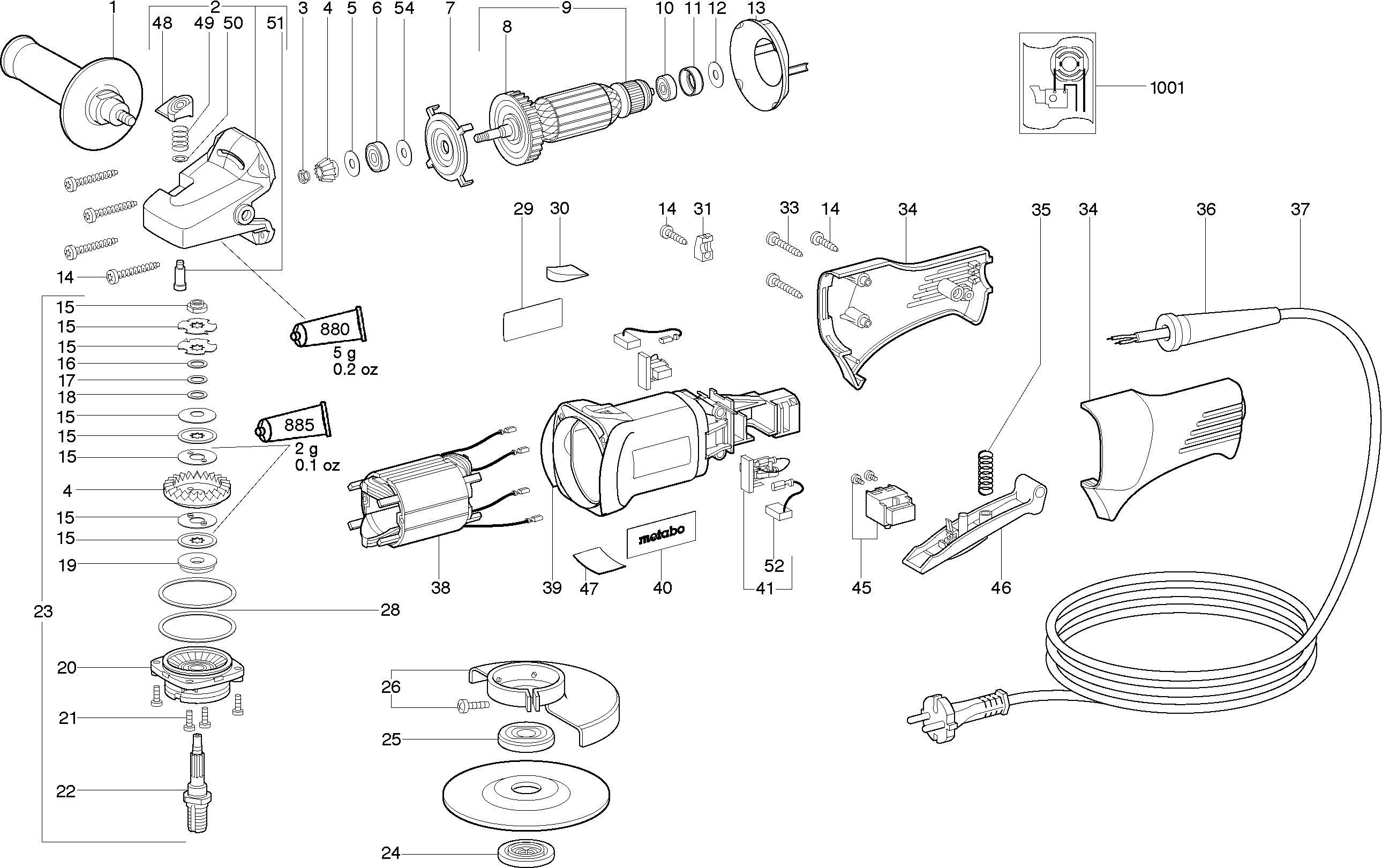 Onderdelen lijst van de Metabo 06209001 ( WPS7-125QUICK )