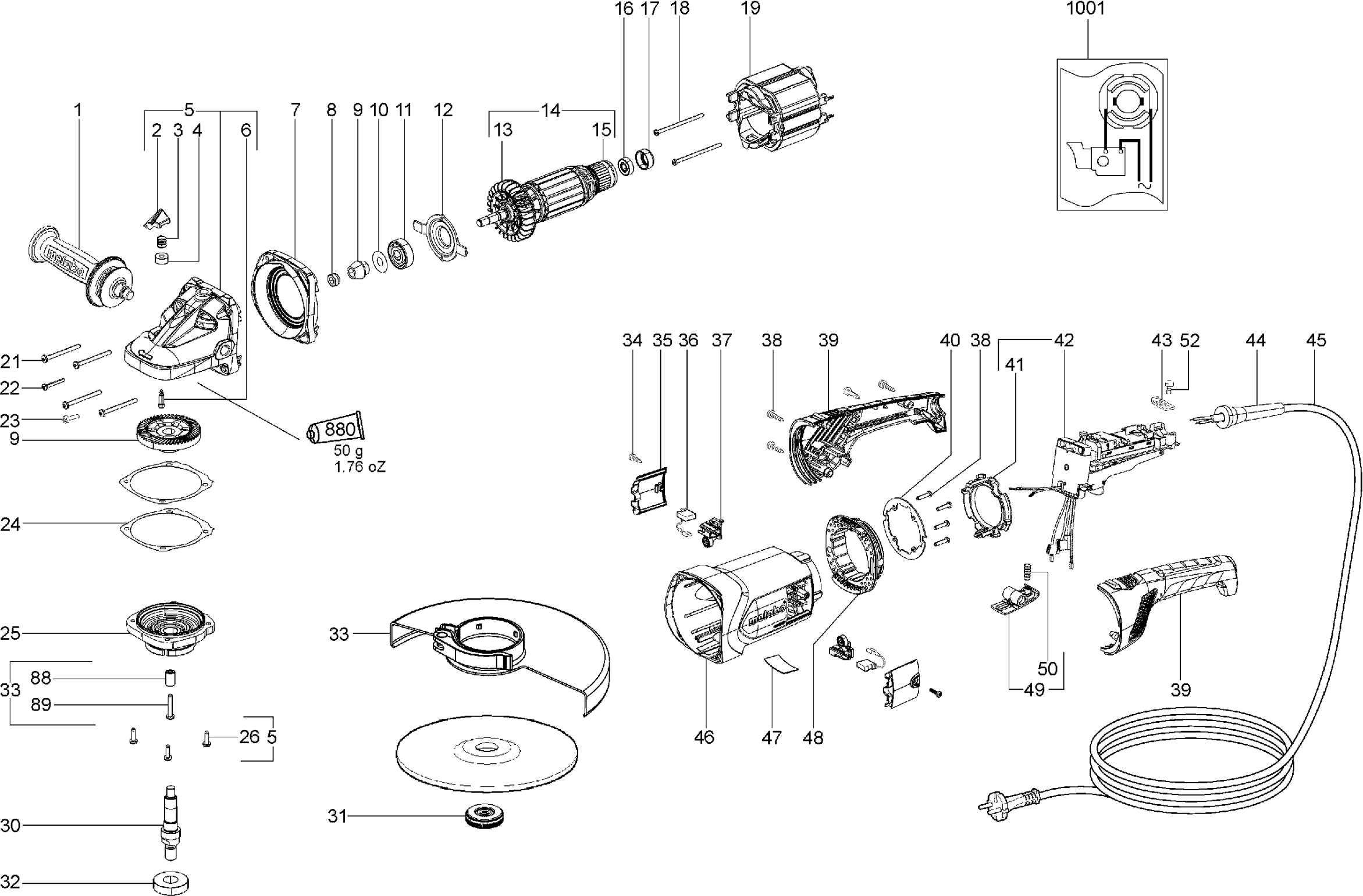 Onderdelen lijst van de Metabo 06455001 ( WXLA26-230QUICK )
