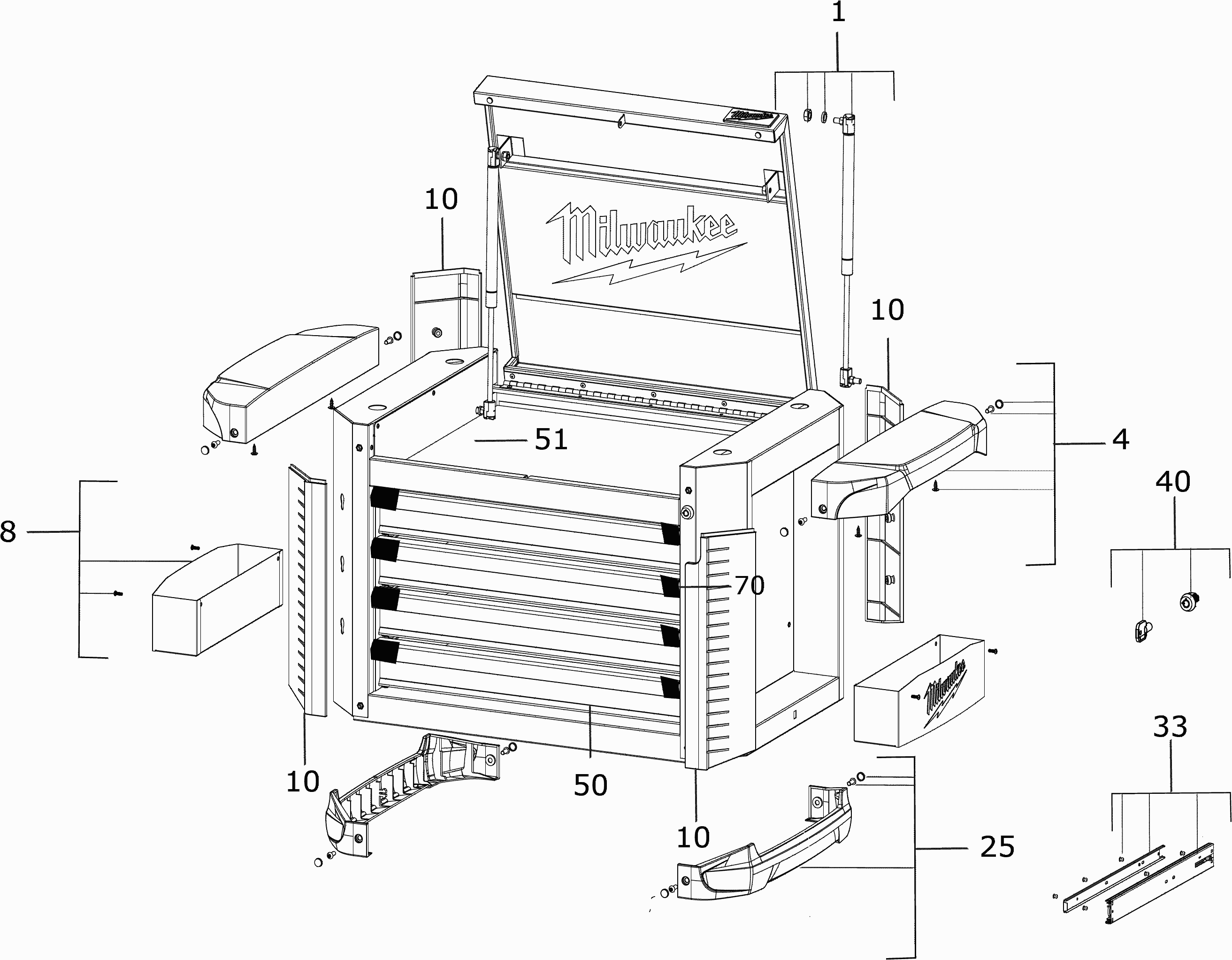 Onderdelen lijst van de Milwaukee 4000483781 ( 30INCHSTEELTOPCHEST )