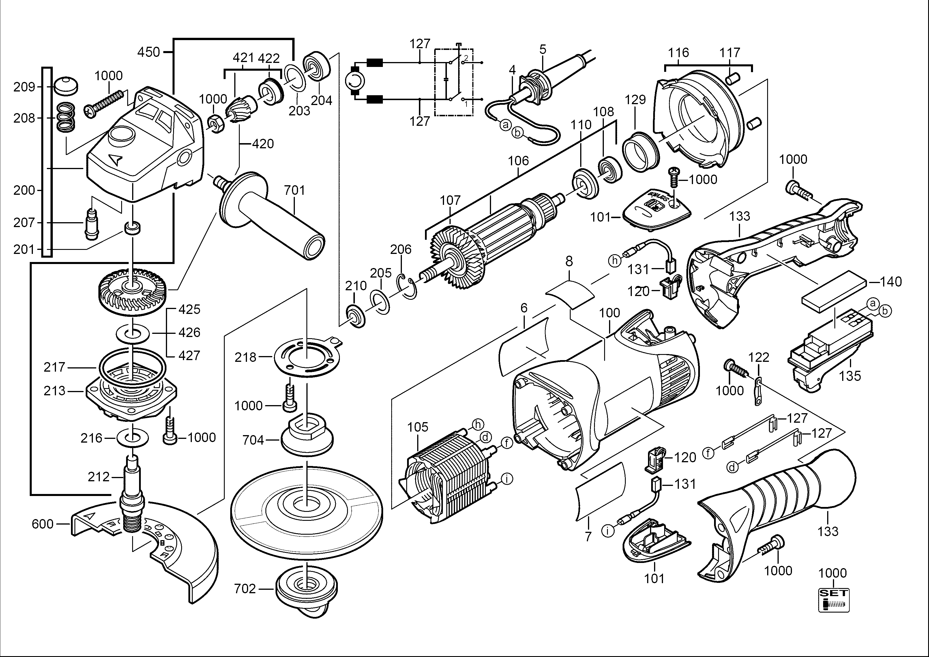 Onderdelen lijst van de Milwaukee 4000407311 ( AG13-125X )