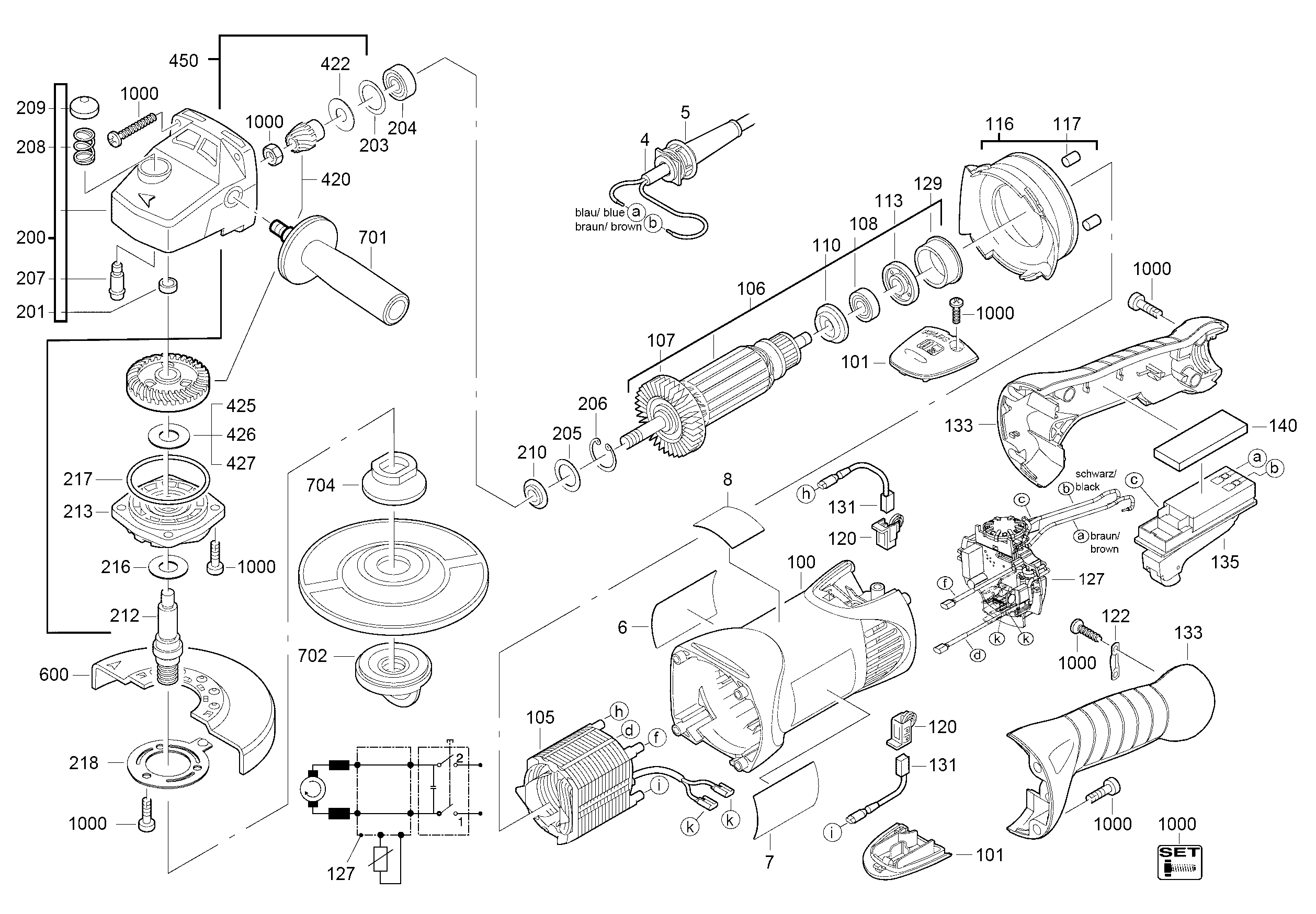 Onderdelen lijst van de Milwaukee 4000455371 ( AG16-125INOX )