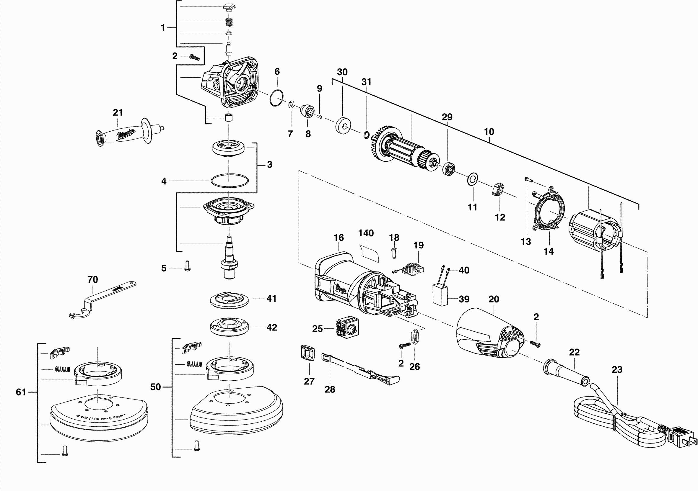 Hier vindt u alle beschikbare onderdelen en tekeningen van de 'Milwaukee 4000416211 ( AG7-115 )'. Vanaf hier kunt u direct alle gewenste onderdelen bestellen. Vele onderdelen moeten bij de fabrikant besteld worden, dit duurt afhankelijk van het merk, één tot vier weken. Alle informatie die we hebben, staat op onze website, wij kunnen u geen advies geven over wat u nodig heeft, daarvoor zult u de machine ter reparatie in moeten leveren. Let bij het bestellen op het volgende: