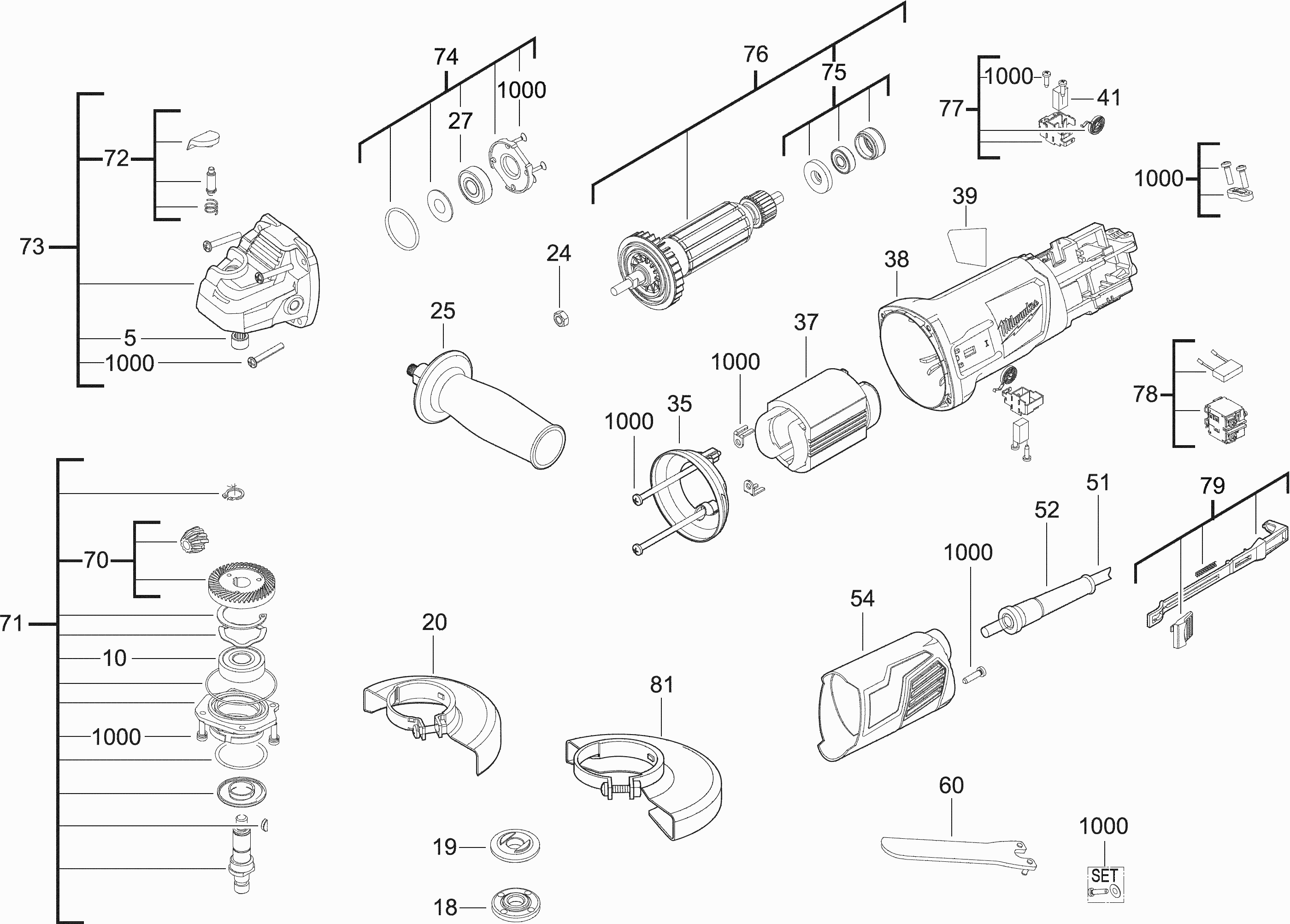 Hier vindt u alle beschikbare onderdelen en tekeningen van de 'Milwaukee 4000452862 ( AG800-125 )'. Vanaf hier kunt u direct alle gewenste onderdelen bestellen. Vele onderdelen moeten bij de fabrikant besteld worden, dit duurt afhankelijk van het merk, één tot vier weken. Alle informatie die we hebben, staat op onze website, wij kunnen u geen advies geven over wat u nodig heeft, daarvoor zult u de machine ter reparatie in moeten leveren. Let bij het bestellen op het volgende: