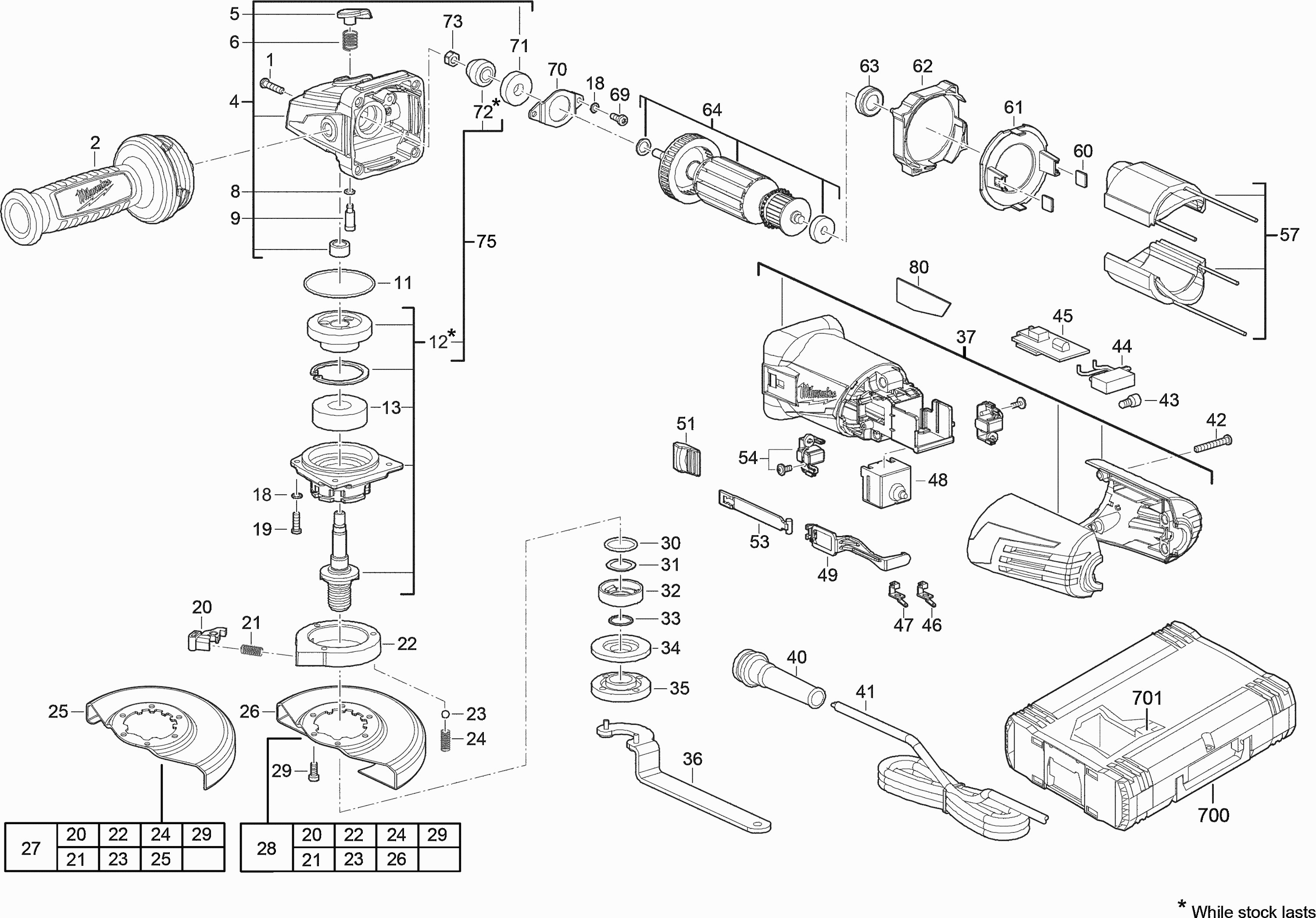 Hier vindt u alle beschikbare onderdelen en tekeningen van de 'Milwaukee 4000428086 ( AGV12-125X )'. Vanaf hier kunt u direct alle gewenste onderdelen bestellen. Vele onderdelen moeten bij de fabrikant besteld worden, dit duurt afhankelijk van het merk, één tot vier weken. Alle informatie die we hebben, staat op onze website, wij kunnen u geen advies geven over wat u nodig heeft, daarvoor zult u de machine ter reparatie in moeten leveren. Let bij het bestellen op het volgende: