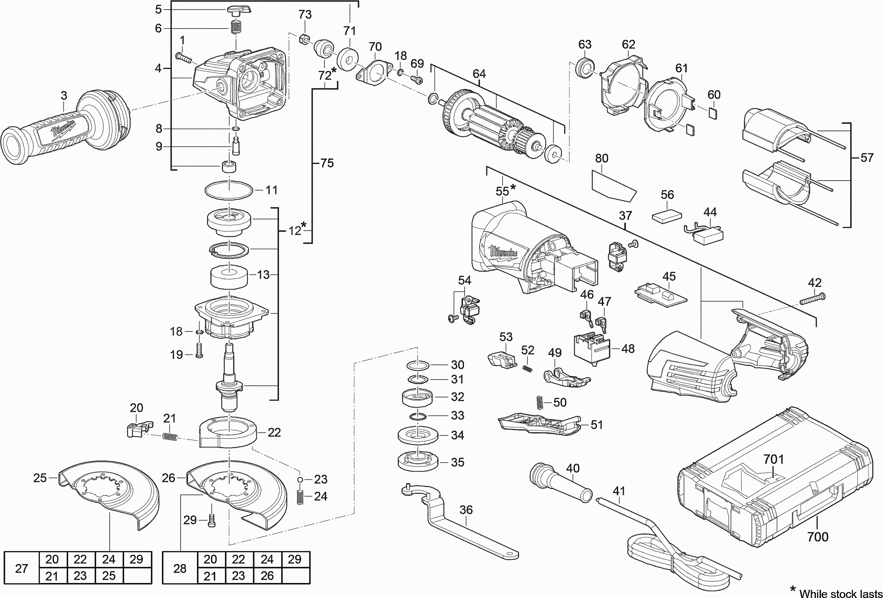 Hier vindt u alle beschikbare onderdelen en tekeningen van de 'Milwaukee 4000433241 ( AGV12-125XPD )'. Vanaf hier kunt u direct alle gewenste onderdelen bestellen. Vele onderdelen moeten bij de fabrikant besteld worden, dit duurt afhankelijk van het merk, één tot vier weken. Alle informatie die we hebben, staat op onze website, wij kunnen u geen advies geven over wat u nodig heeft, daarvoor zult u de machine ter reparatie in moeten leveren. Let bij het bestellen op het volgende: