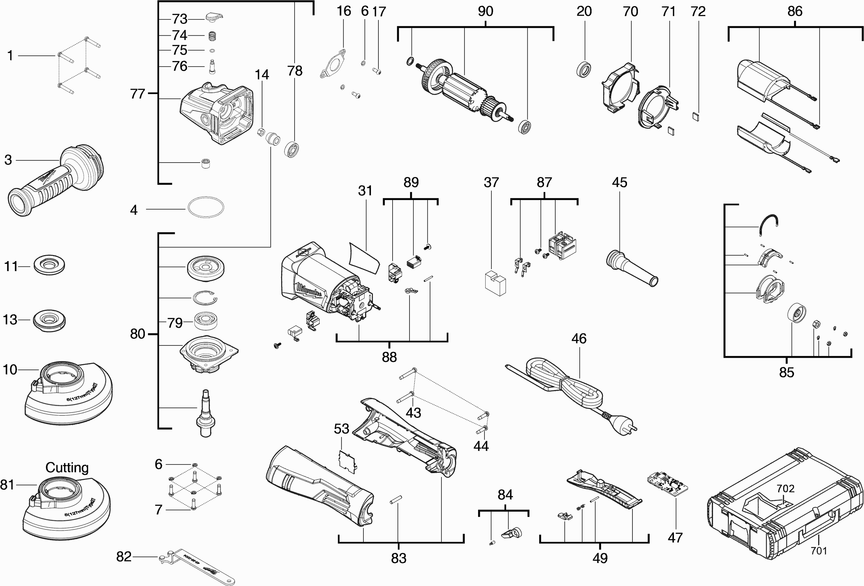 Hier vindt u alle beschikbare onderdelen en tekeningen van de 'Milwaukee 4000469546 ( AGV13-125XSPDEB )'. Vanaf hier kunt u direct alle gewenste onderdelen bestellen. Vele onderdelen moeten bij de fabrikant besteld worden, dit duurt afhankelijk van het merk, één tot vier weken. Alle informatie die we hebben, staat op onze website, wij kunnen u geen advies geven over wat u nodig heeft, daarvoor zult u de machine ter reparatie in moeten leveren. Let bij het bestellen op het volgende: