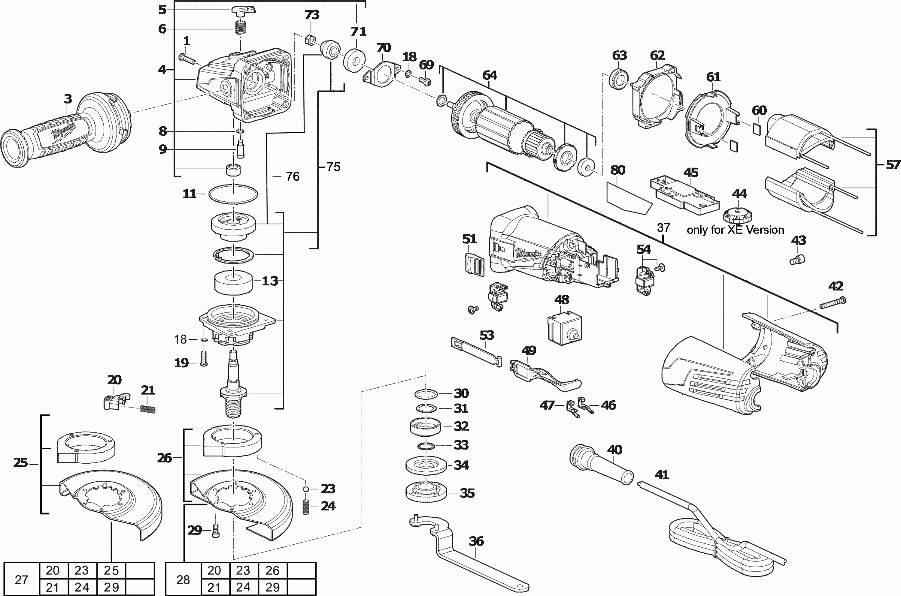 Hier vindt u alle beschikbare onderdelen en tekeningen van de 'Milwaukee 4000458464 ( AGV15-125XC )'. Vanaf hier kunt u direct alle gewenste onderdelen bestellen. Vele onderdelen moeten bij de fabrikant besteld worden, dit duurt afhankelijk van het merk, één tot vier weken. Alle informatie die we hebben, staat op onze website, wij kunnen u geen advies geven over wat u nodig heeft, daarvoor zult u de machine ter reparatie in moeten leveren. Let bij het bestellen op het volgende: