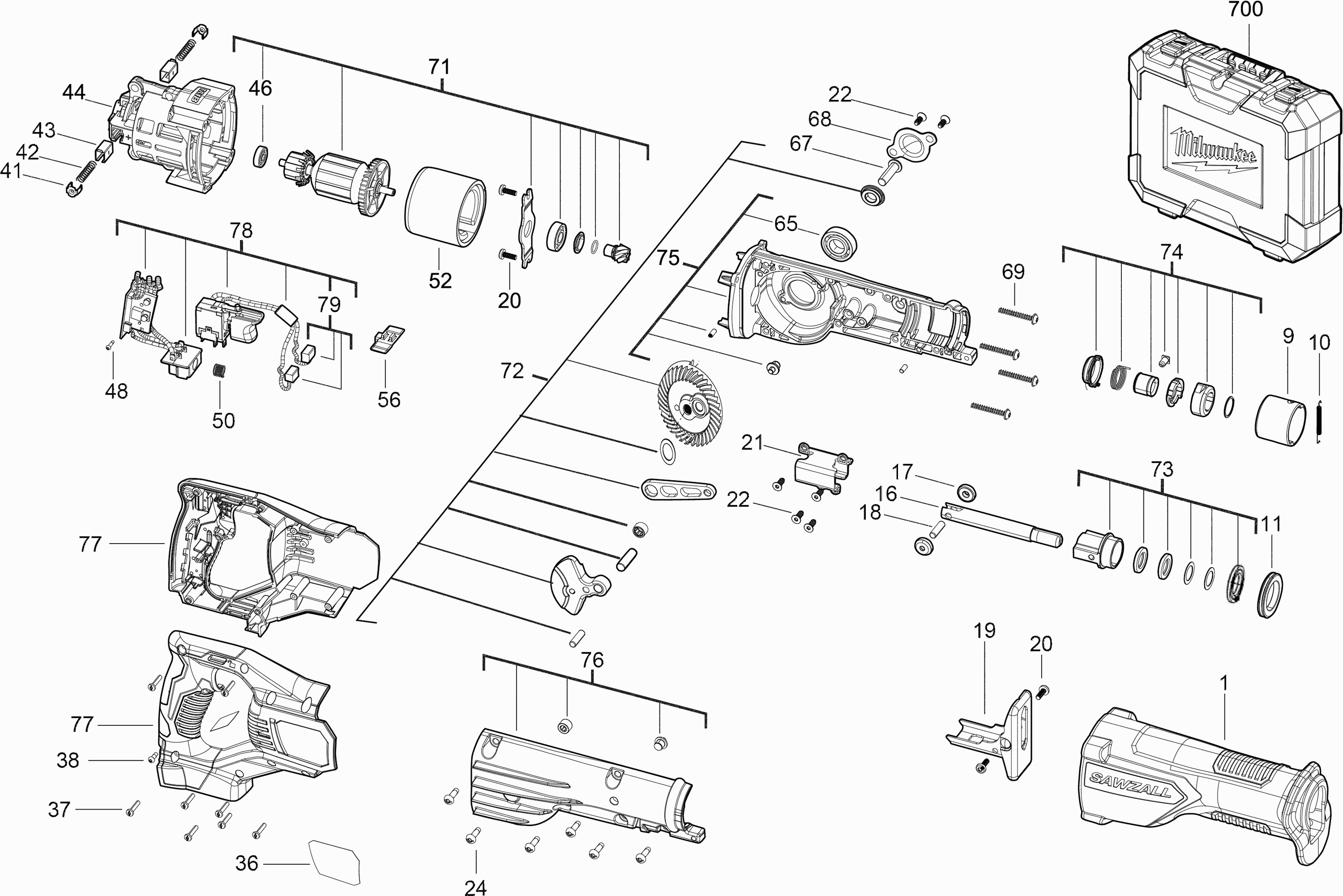 Onderdelen lijst van de Milwaukee 4000469797 ( M18BSX-0 )