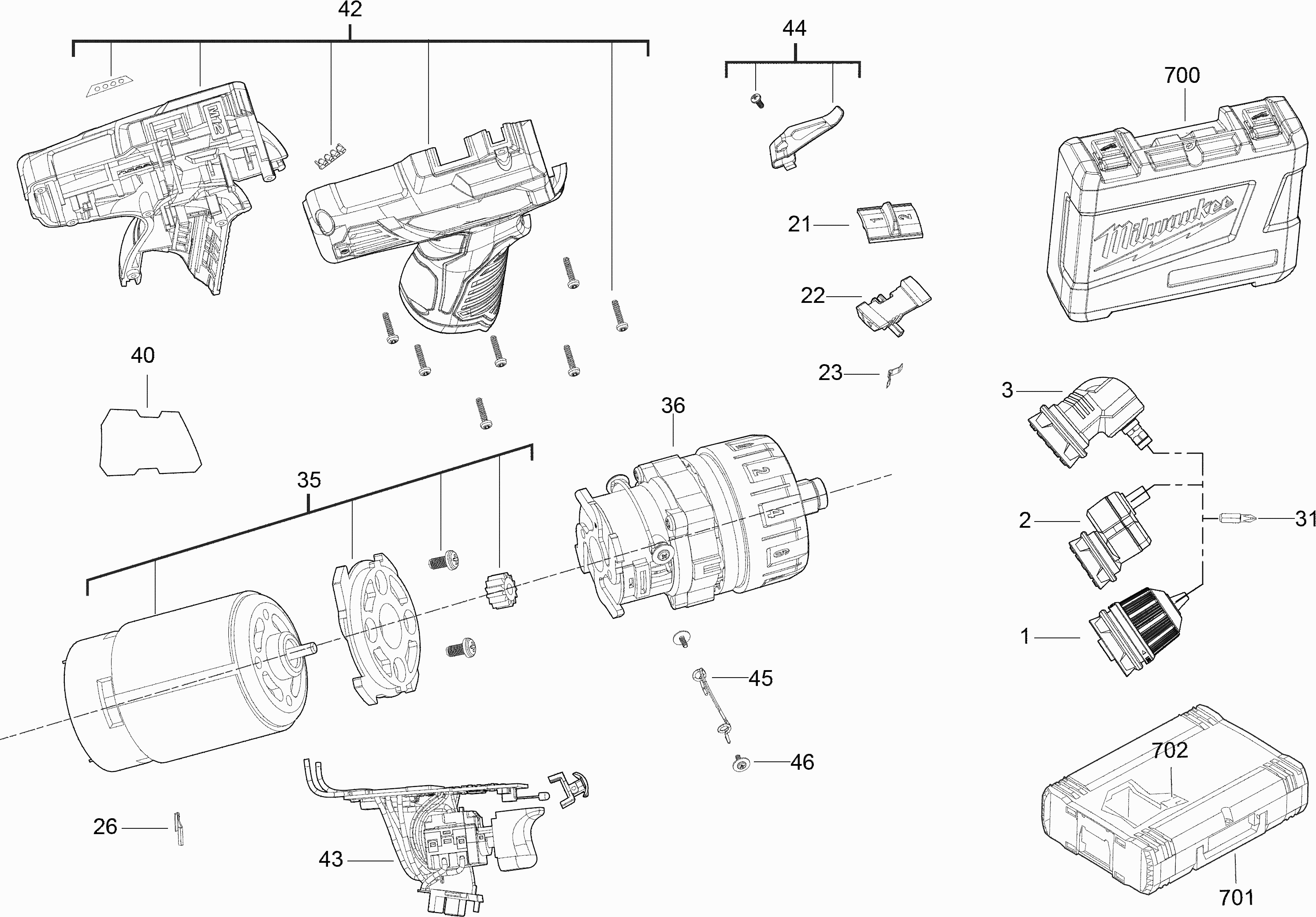 Hier vindt u alle beschikbare onderdelen en tekeningen van de 'Milwaukee 4000447170 ( M12BDDX-202CIN2 )'. Vanaf hier kunt u direct alle gewenste onderdelen bestellen. Vele onderdelen moeten bij de fabrikant besteld worden, dit duurt afhankelijk van het merk, één tot vier weken. Alle informatie die we hebben, staat op onze website, wij kunnen u geen advies geven over wat u nodig heeft, daarvoor zult u de machine ter reparatie in moeten leveren. Let bij het bestellen op het volgende: