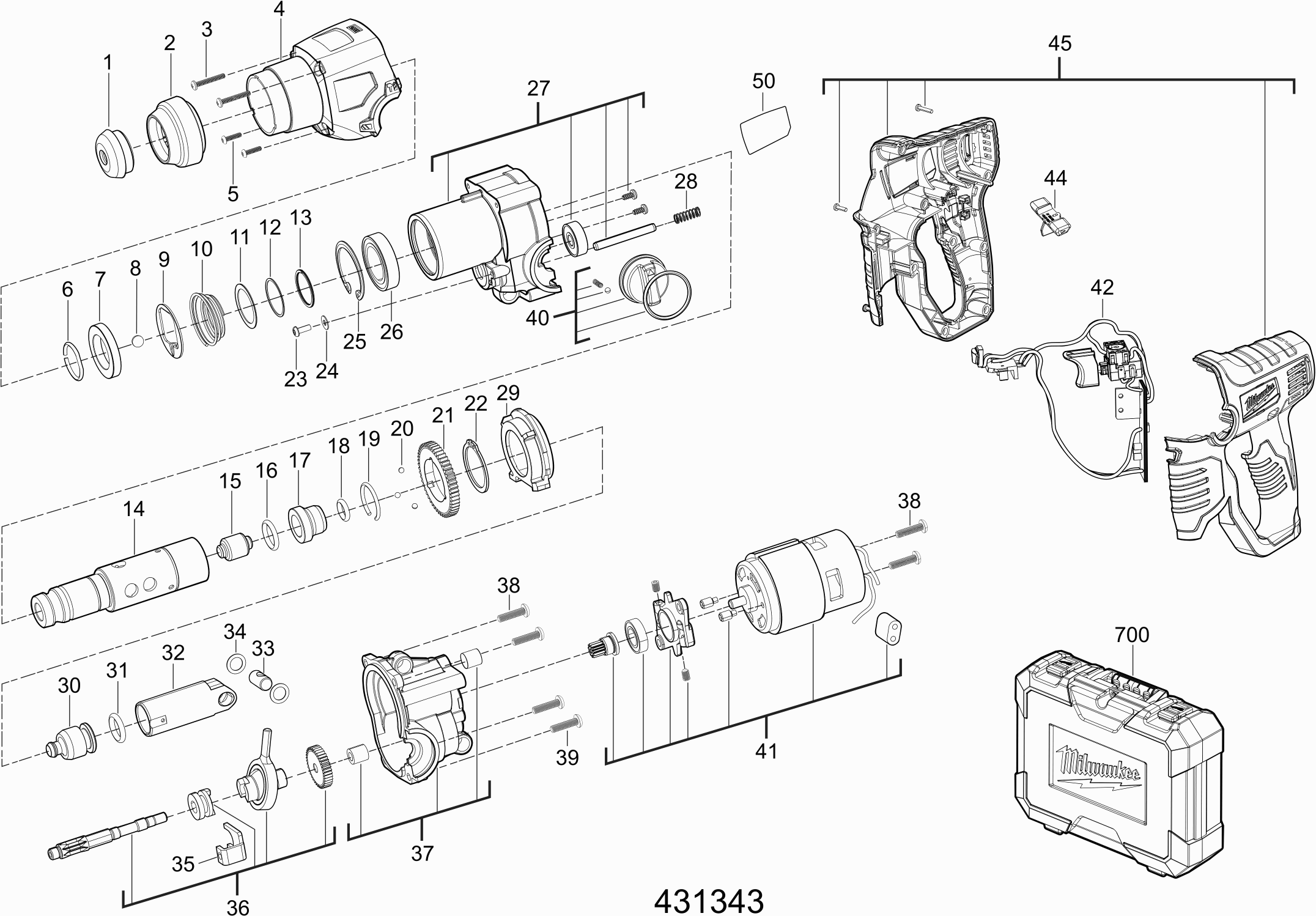Onderdelen lijst van de Milwaukee 4000431341 ( M12H-0 )