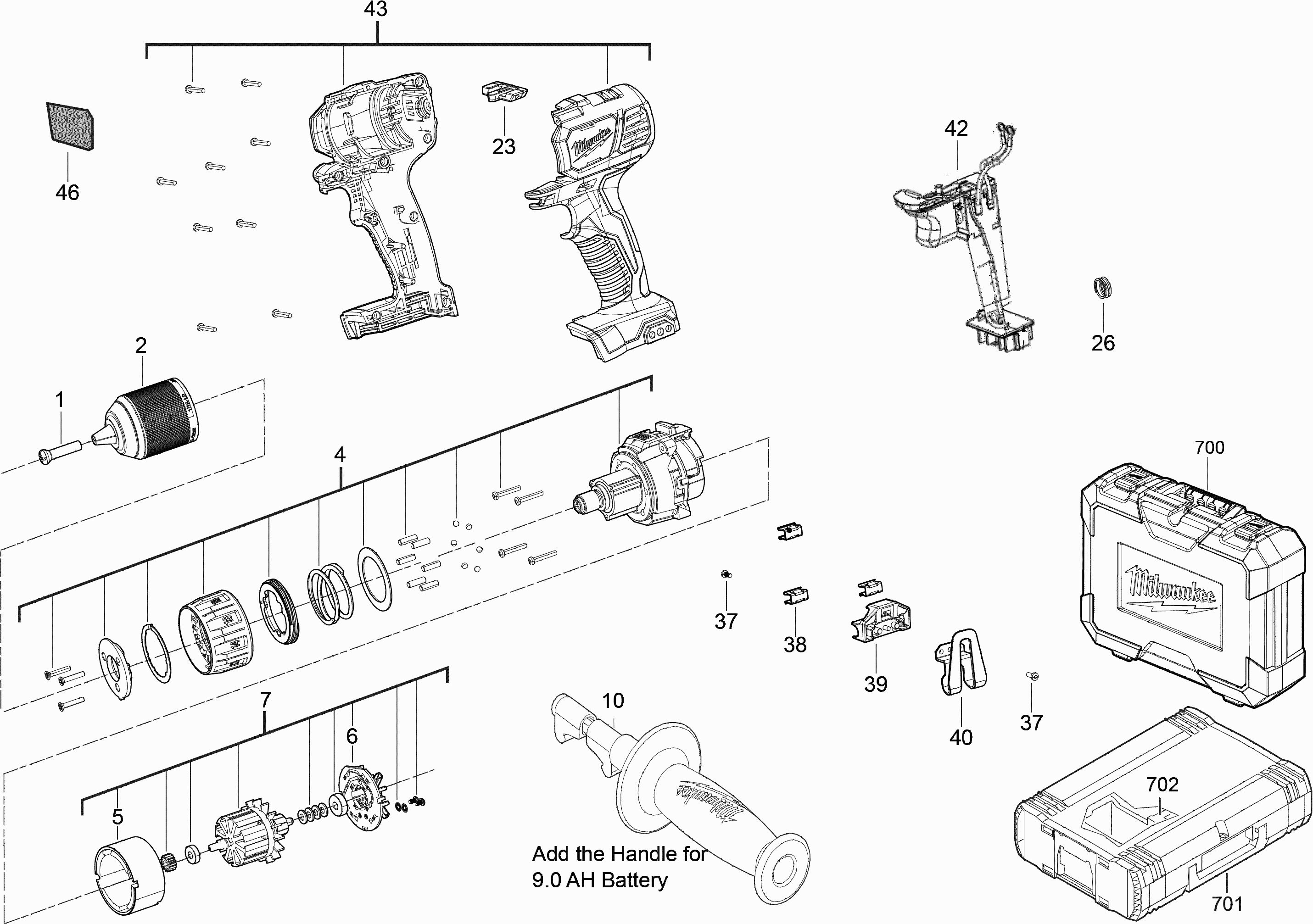 Onderdelen lijst van de Milwaukee 4000481210 ( M18BDD-0 )
