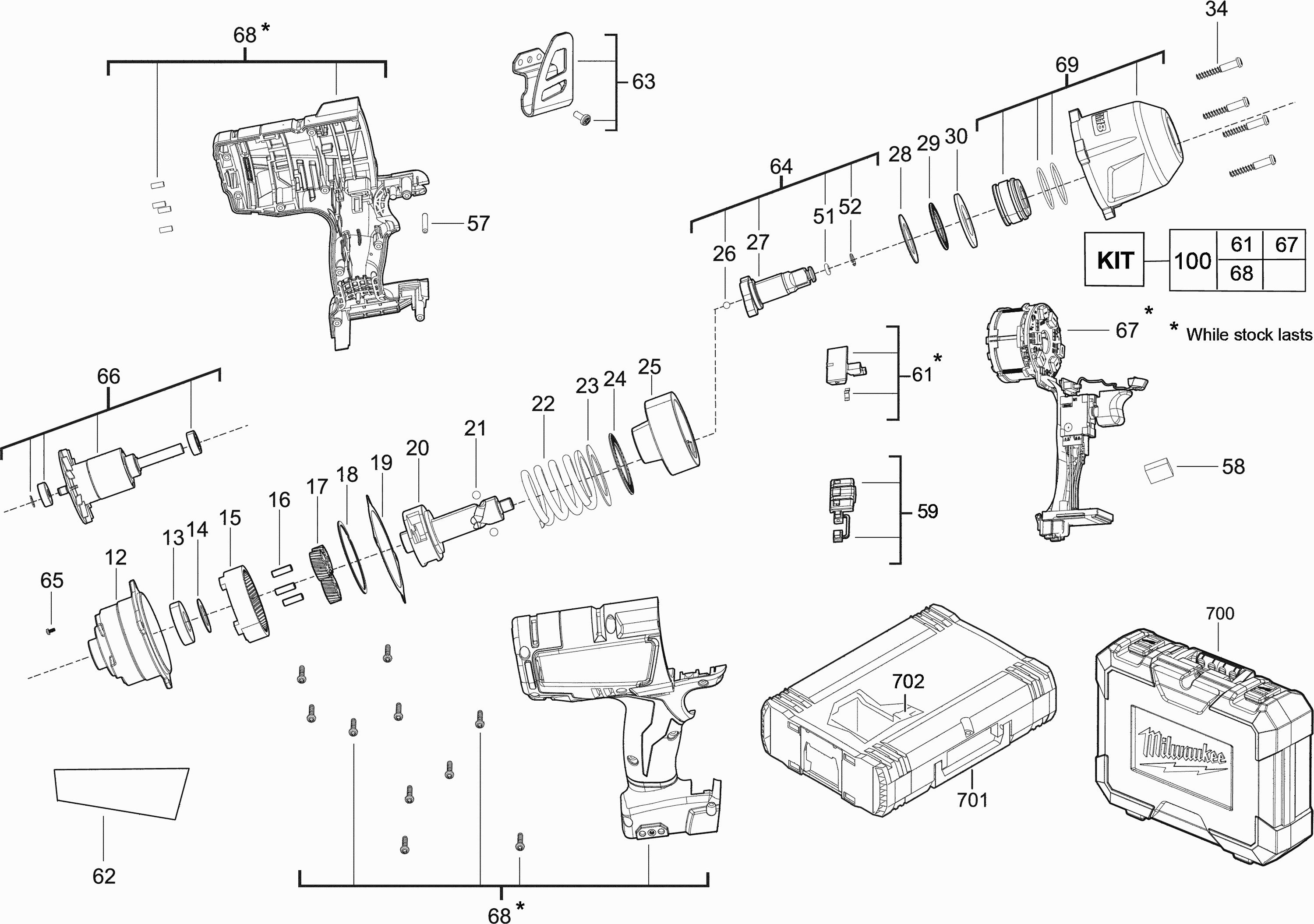 Hier vindt u alle beschikbare onderdelen en tekeningen van de 'Milwaukee 4000446238 ( M18CHIWF12-0 )'. Vanaf hier kunt u direct alle gewenste onderdelen bestellen. Vele onderdelen moeten bij de fabrikant besteld worden, dit duurt afhankelijk van het merk, één tot vier weken. Alle informatie die we hebben, staat op onze website, wij kunnen u geen advies geven over wat u nodig heeft, daarvoor zult u de machine ter reparatie in moeten leveren. Let bij het bestellen op het volgende: