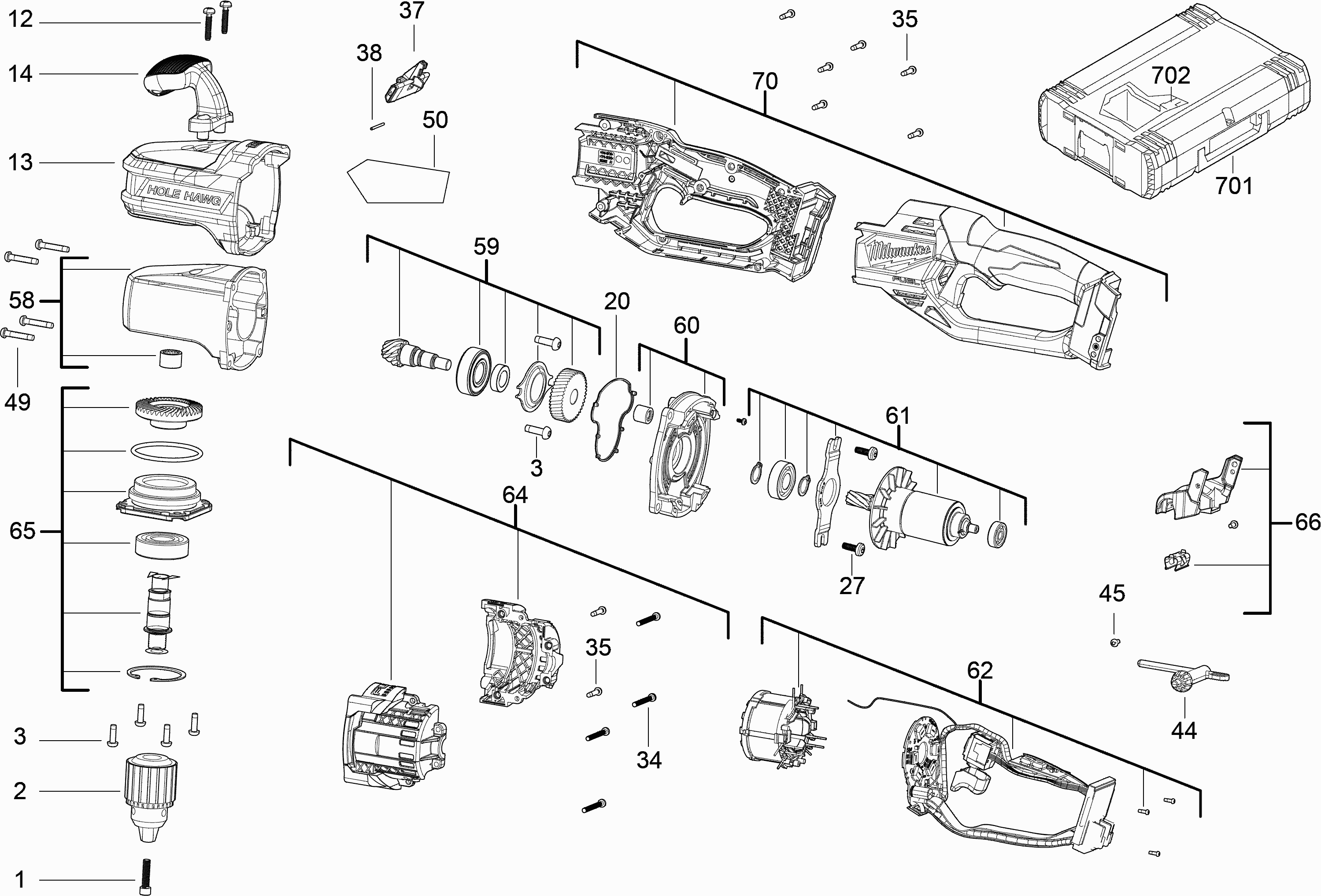 Onderdelen lijst van de Milwaukee 4000477109 ( M18CRAD2-0X )