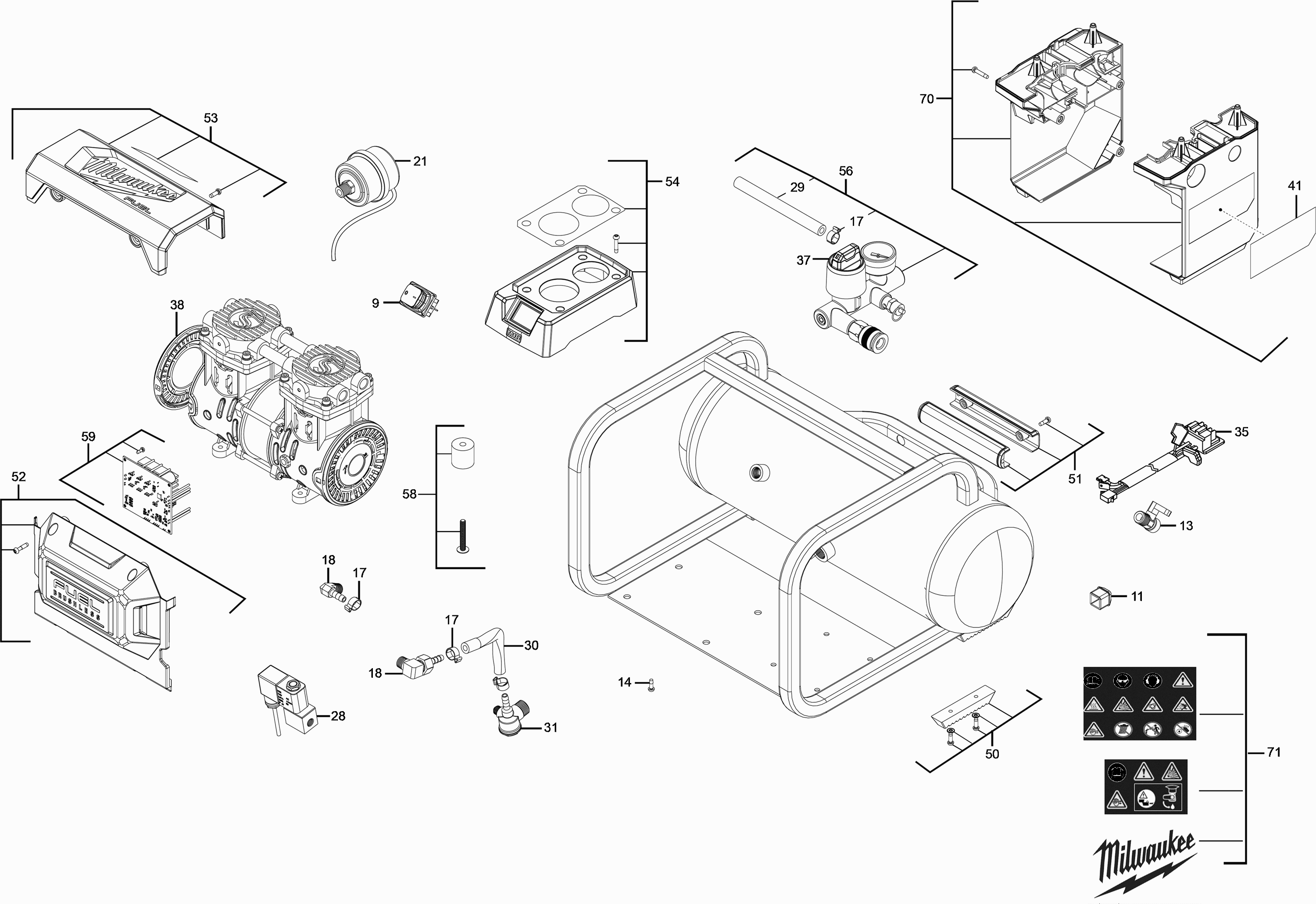 Onderdelen lijst van de Milwaukee 4000477404 ( M18FAC-0 )