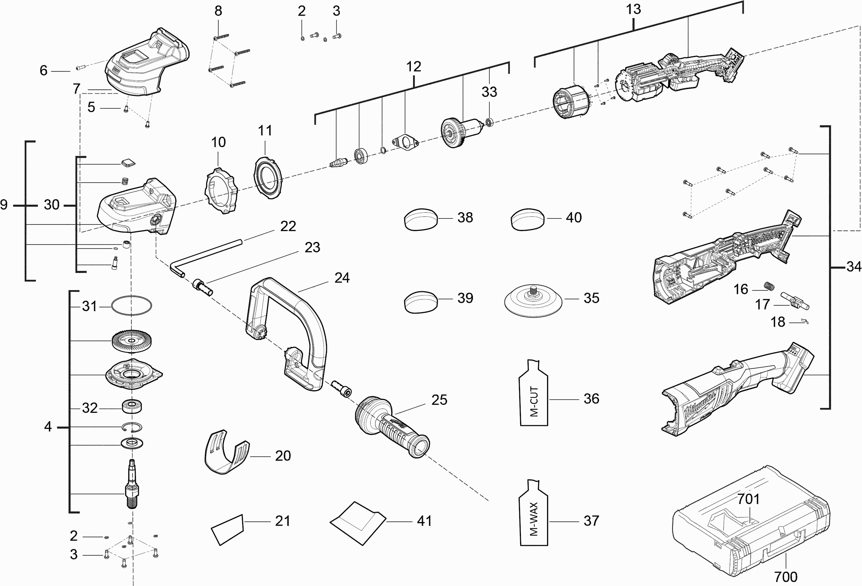 Hier vindt u alle beschikbare onderdelen en tekeningen van de 'Milwaukee 4000456845 ( M18FAP180-0 )'. Vanaf hier kunt u direct alle gewenste onderdelen bestellen. Vele onderdelen moeten bij de fabrikant besteld worden, dit duurt afhankelijk van het merk, één tot vier weken. Alle informatie die we hebben, staat op onze website, wij kunnen u geen advies geven over wat u nodig heeft, daarvoor zult u de machine ter reparatie in moeten leveren. Let bij het bestellen op het volgende: