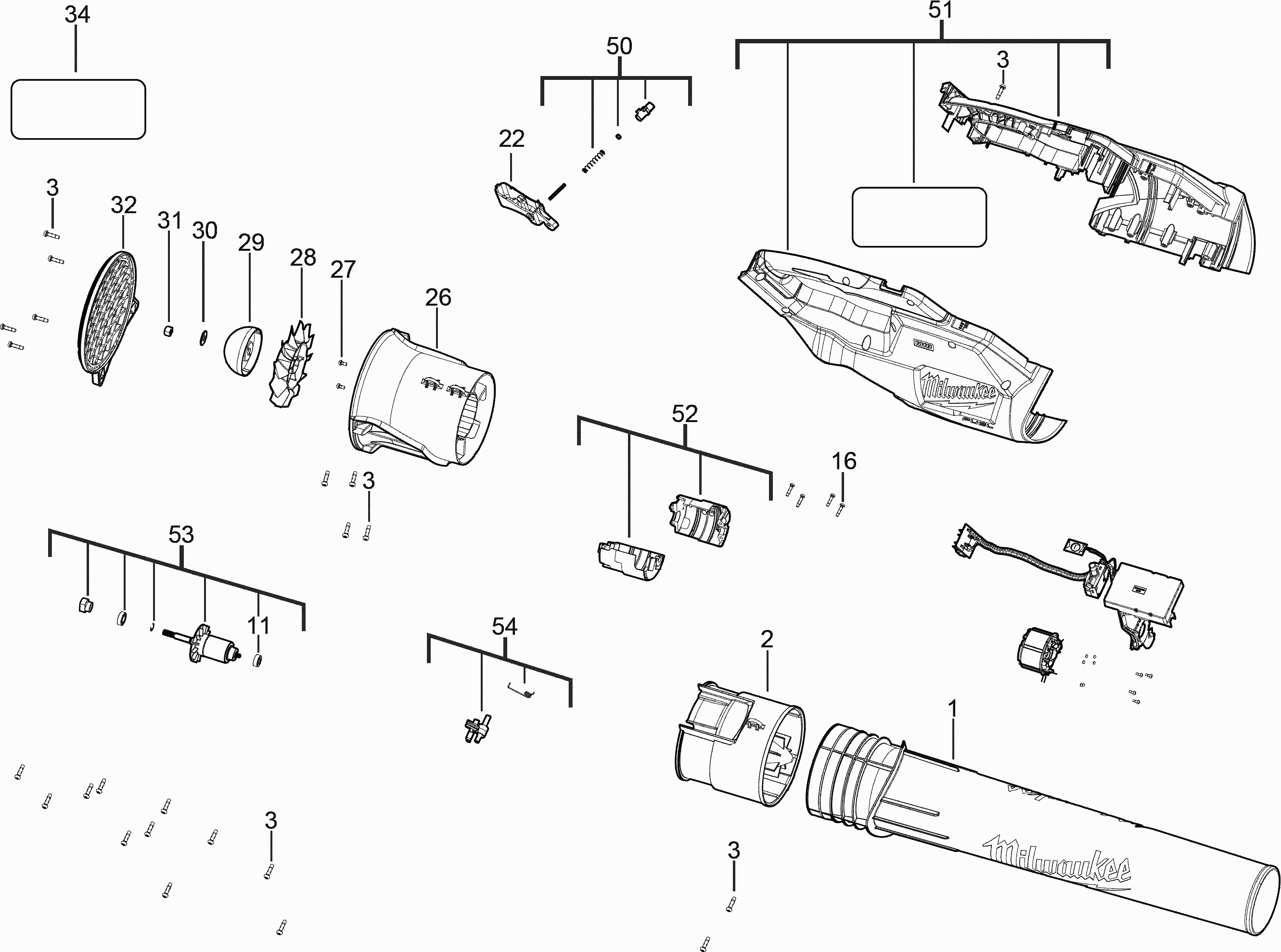 Onderdelen lijst van de Milwaukee 4000467055 ( M18FBL-0 )