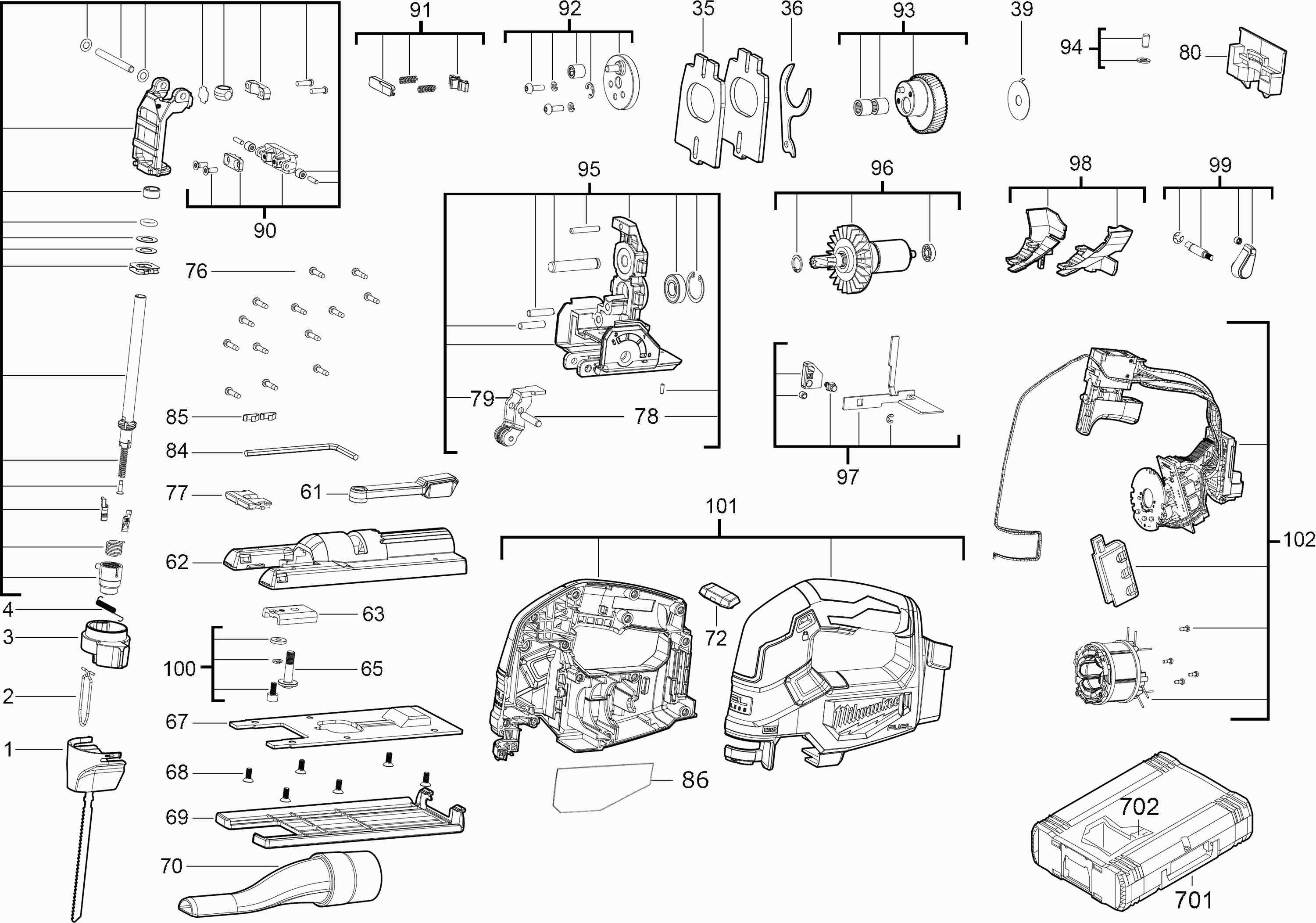 Onderdelen lijst van de Milwaukee 4000469259 ( M18FJS-0 )