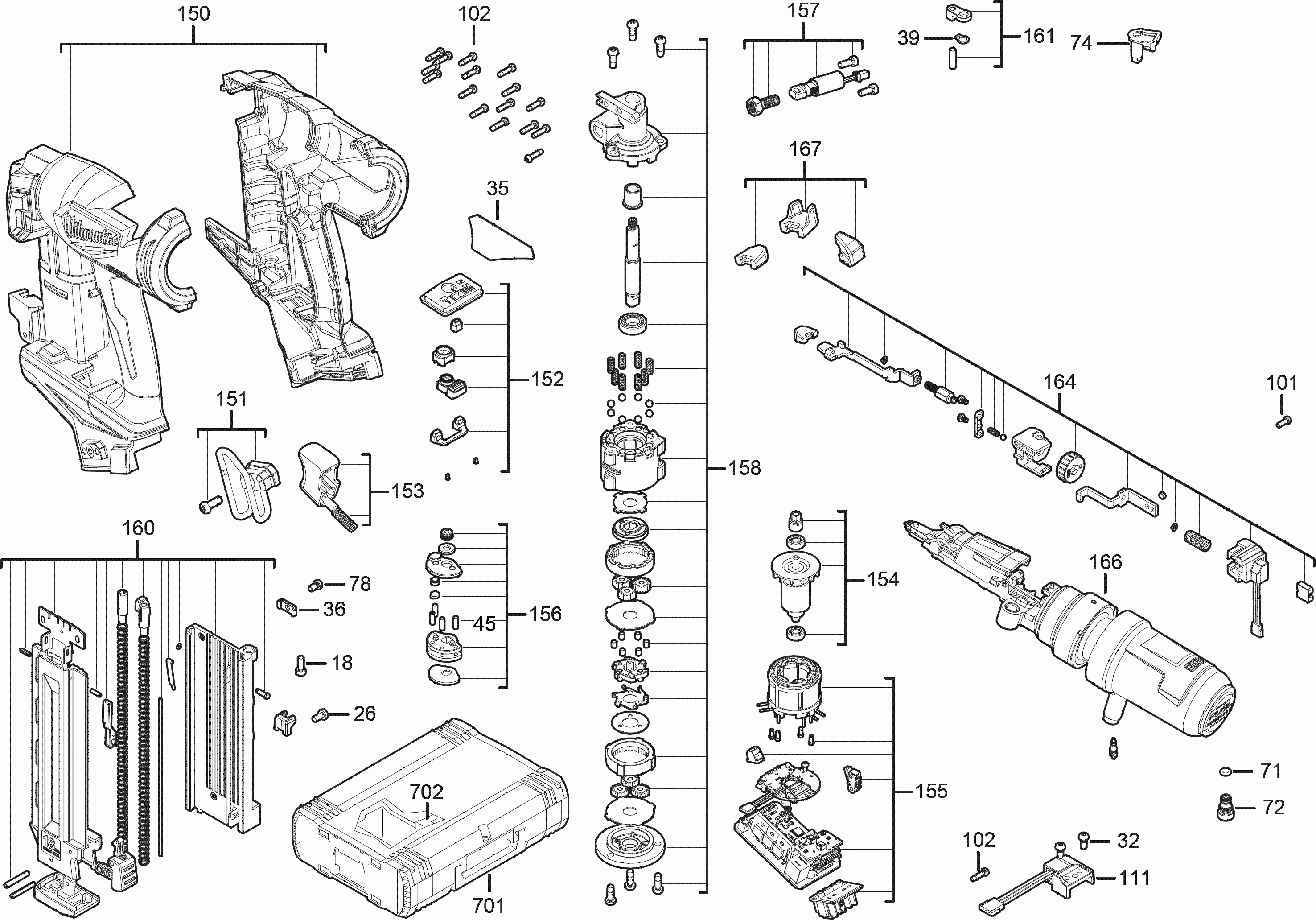 Onderdelen lijst van de Milwaukee 4000474126 ( M18FN18GS-0 )