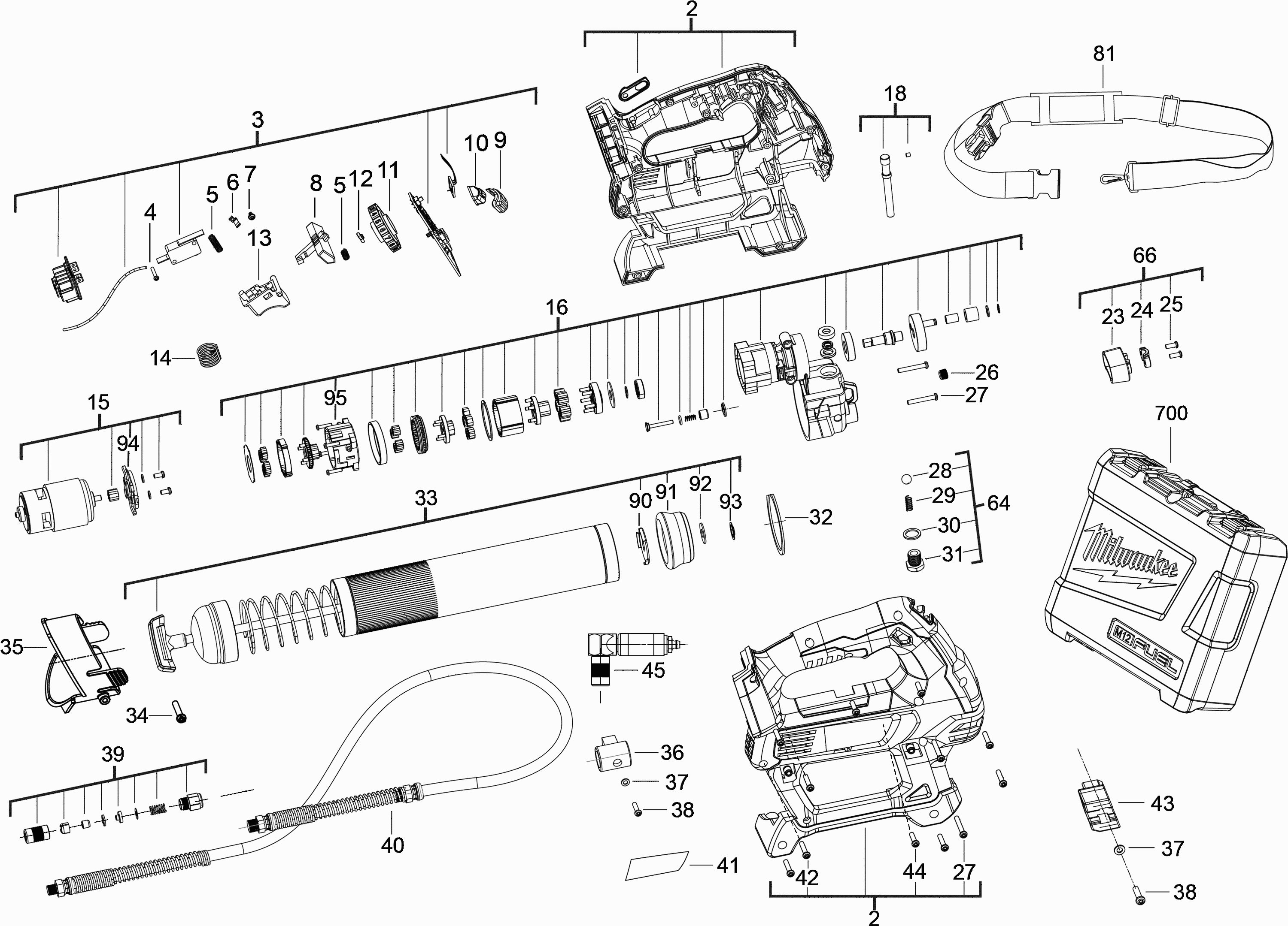Onderdelen lijst van de Milwaukee 4000440426 ( M18GG-0 )
