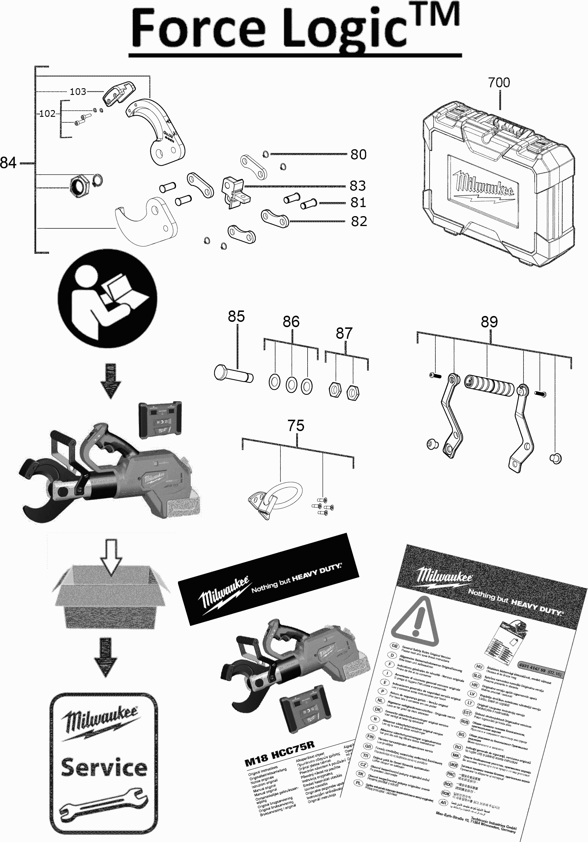 Hier vindt u alle beschikbare onderdelen en tekeningen van de 'Milwaukee 4000458720 ( M18HCC75R-502CGB2 )'. Vanaf hier kunt u direct alle gewenste onderdelen bestellen. Vele onderdelen moeten bij de fabrikant besteld worden, dit duurt afhankelijk van het merk, één tot vier weken. Alle informatie die we hebben, staat op onze website, wij kunnen u geen advies geven over wat u nodig heeft, daarvoor zult u de machine ter reparatie in moeten leveren. Let bij het bestellen op het volgende: