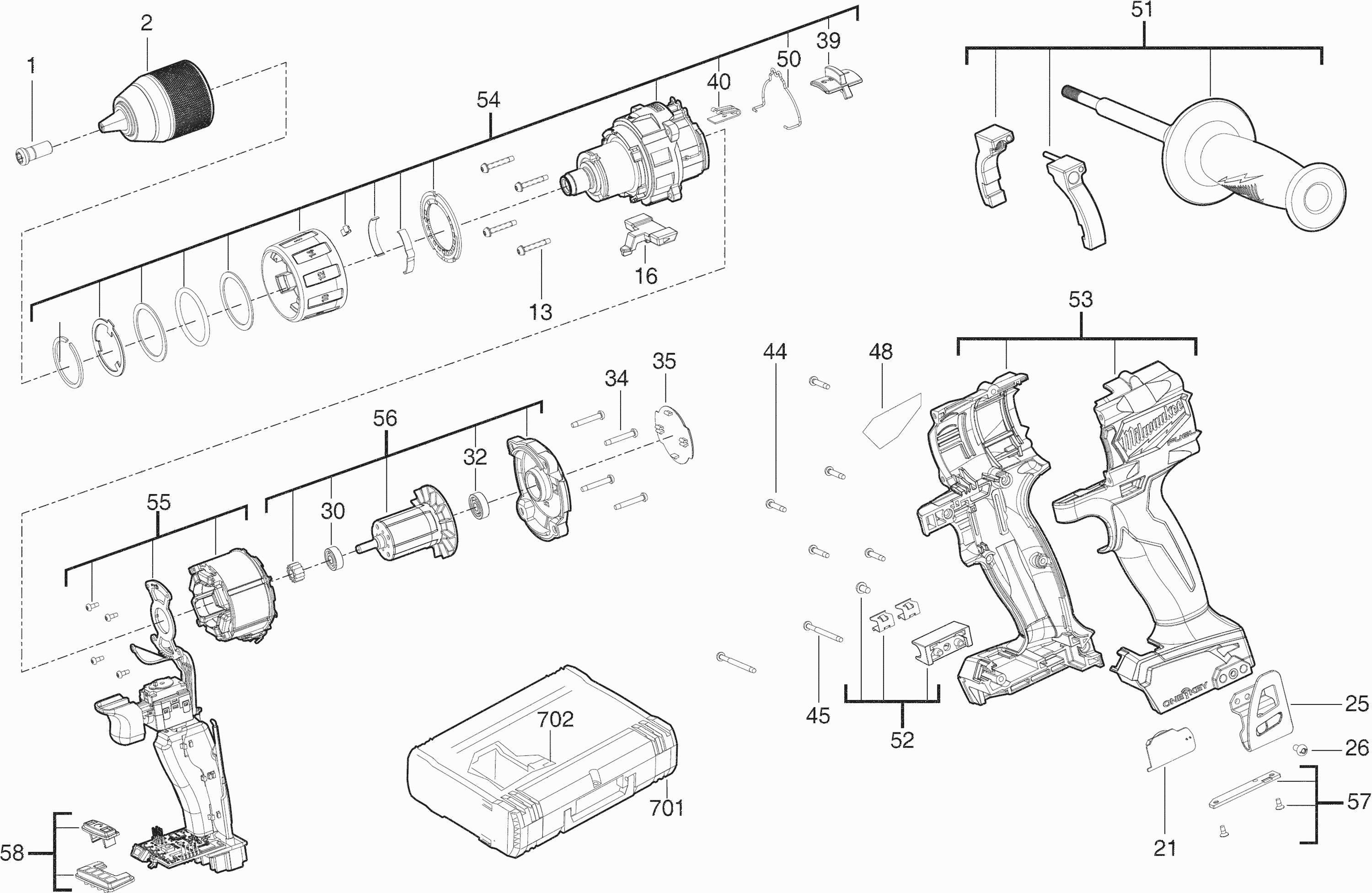 Onderdelen lijst van de Milwaukee 4000469196 ( M18ONEDD2-0X )