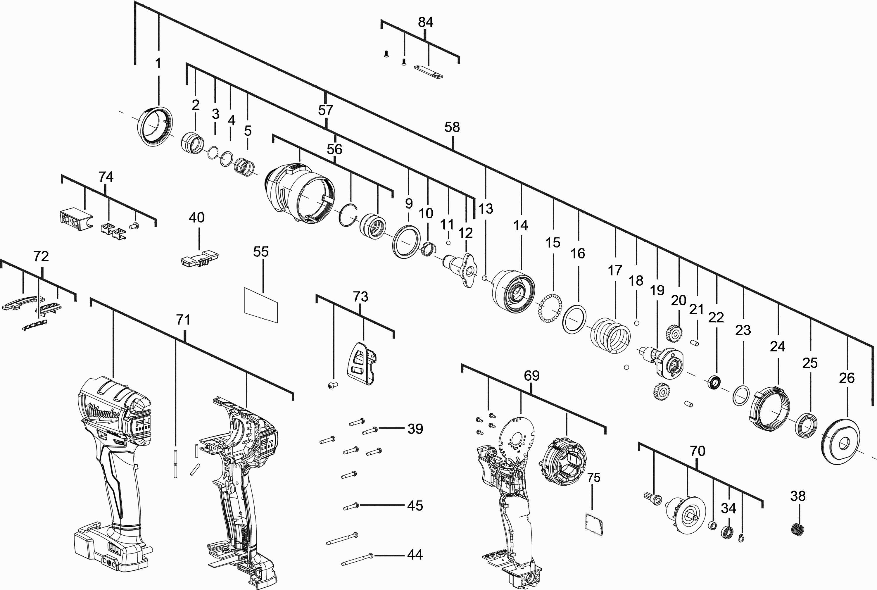 Onderdelen lijst van de Milwaukee 4000452733 ( M18ONEID-0 )