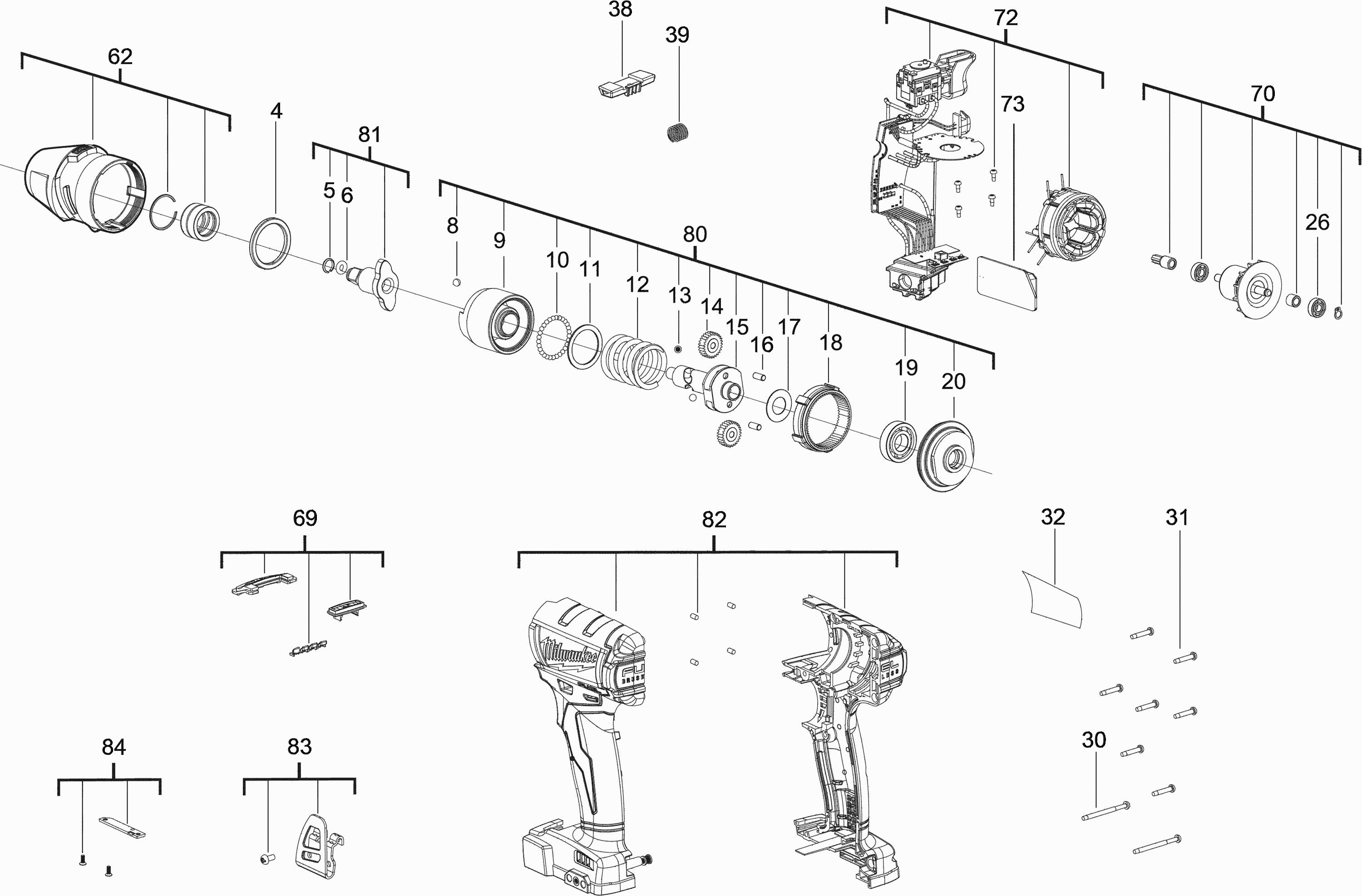 Hier vindt u alle beschikbare onderdelen en tekeningen van de 'Milwaukee 4000452747 ( M18ONEIWF38-0 )'. Vanaf hier kunt u direct alle gewenste onderdelen bestellen. Vele onderdelen moeten bij de fabrikant besteld worden, dit duurt afhankelijk van het merk, één tot vier weken. Alle informatie die we hebben, staat op onze website, wij kunnen u geen advies geven over wat u nodig heeft, daarvoor zult u de machine ter reparatie in moeten leveren. Let bij het bestellen op het volgende: