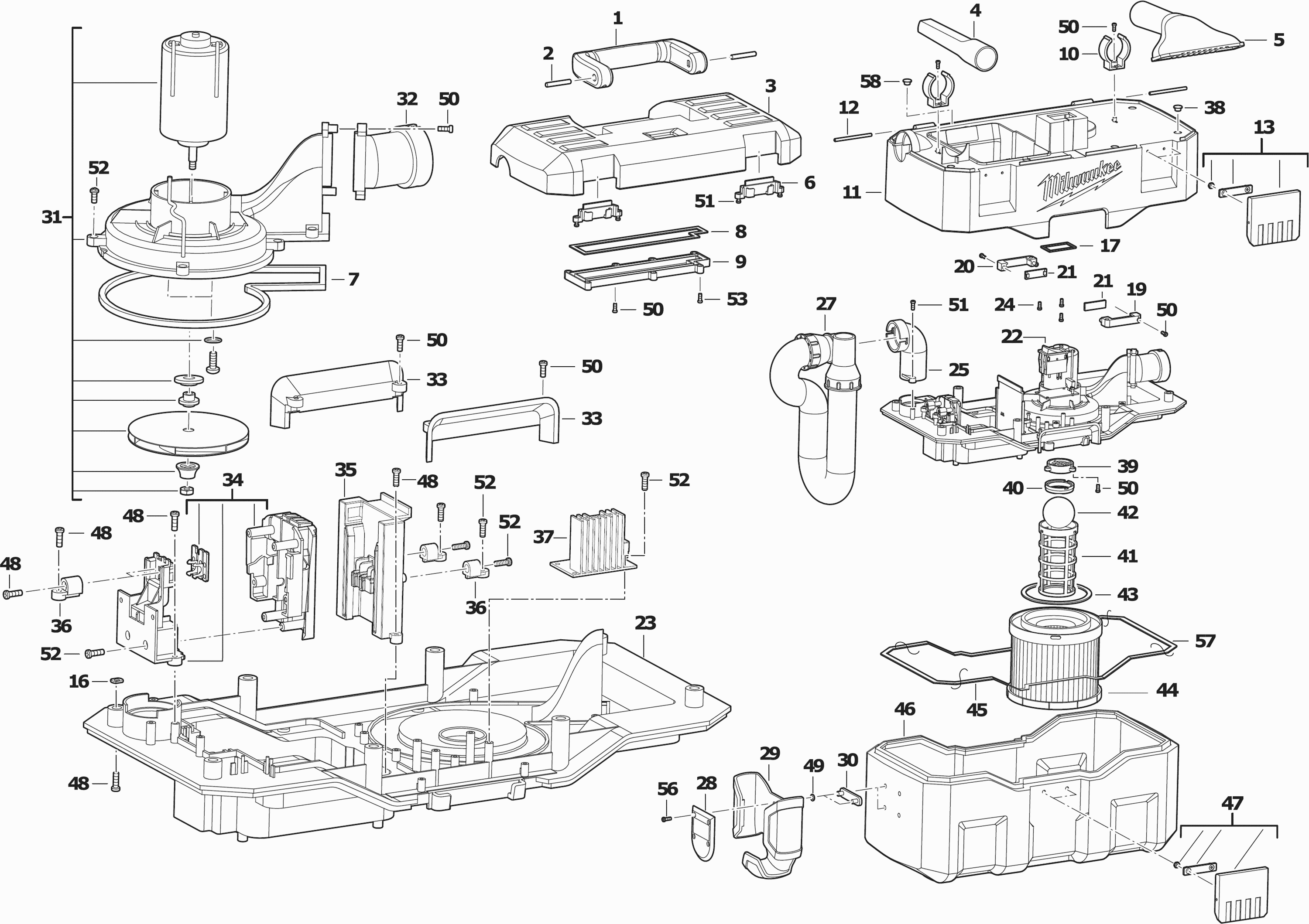 Onderdelen lijst van de Milwaukee 4000433602 ( M18VC-0 )