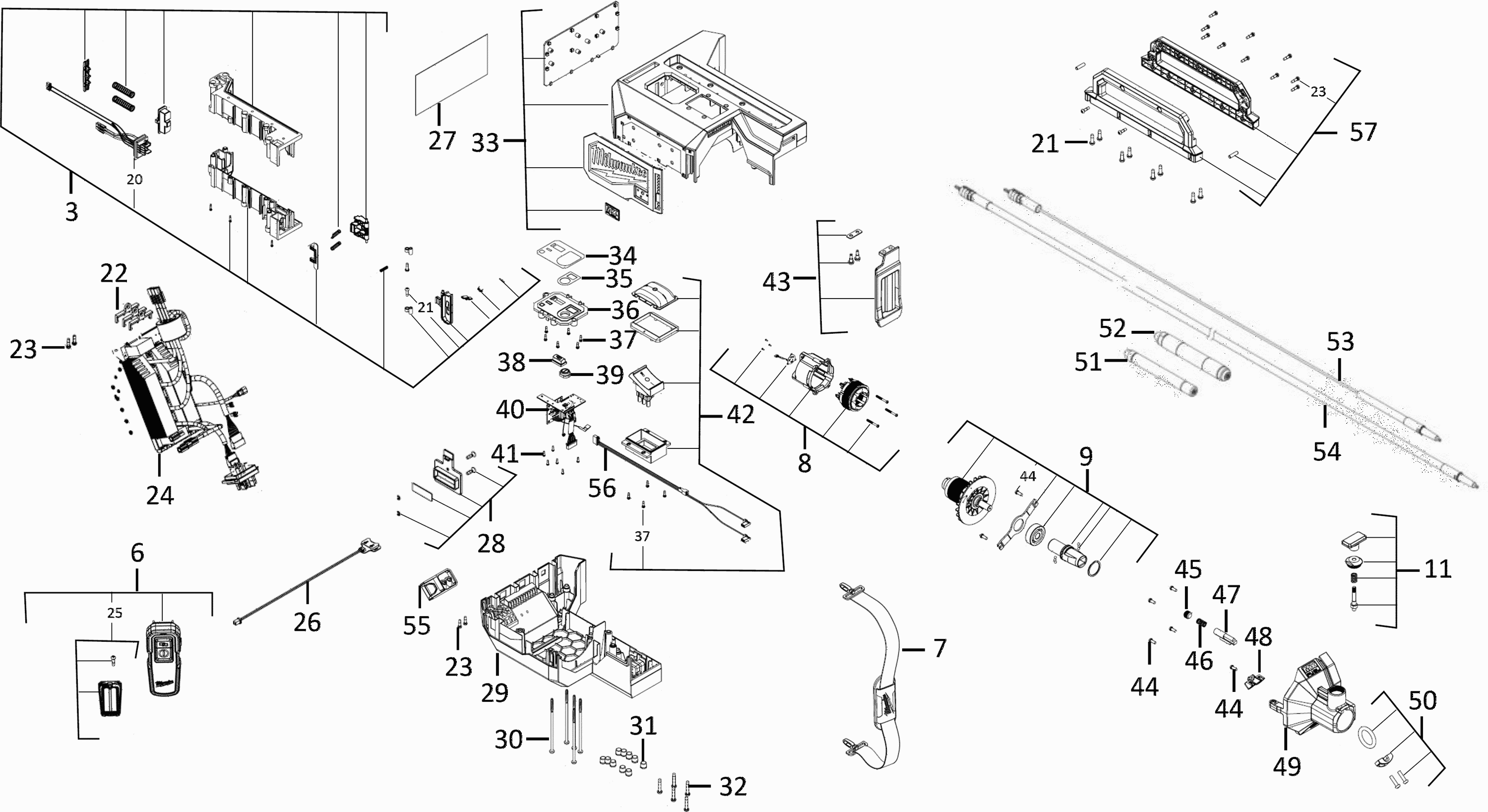 Hier vindt u alle beschikbare onderdelen en tekeningen van de 'Milwaukee 4000491335 ( MXFCVBC(NOSALE) )'. Vanaf hier kunt u direct alle gewenste onderdelen bestellen. Vele onderdelen moeten bij de fabrikant besteld worden, dit duurt afhankelijk van het merk, één tot vier weken. Alle informatie die we hebben, staat op onze website, wij kunnen u geen advies geven over wat u nodig heeft, daarvoor zult u de machine ter reparatie in moeten leveren. Let bij het bestellen op het volgende: