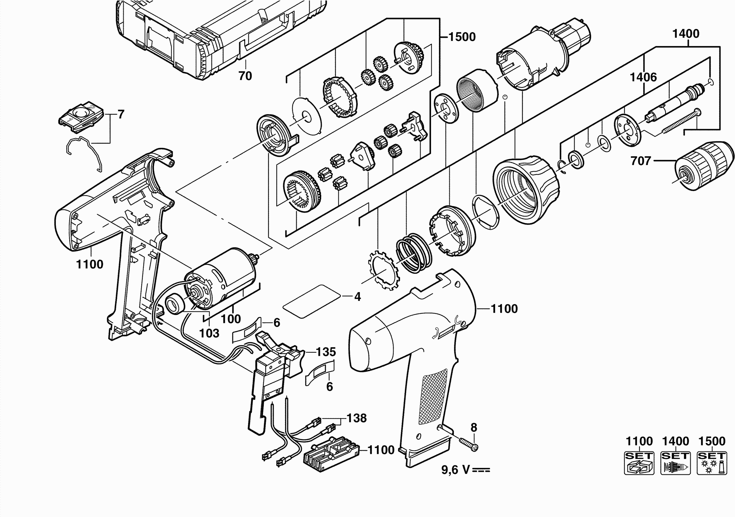 Onderdelen lijst van de Milwaukee 4000382691 ( PES9.6T )