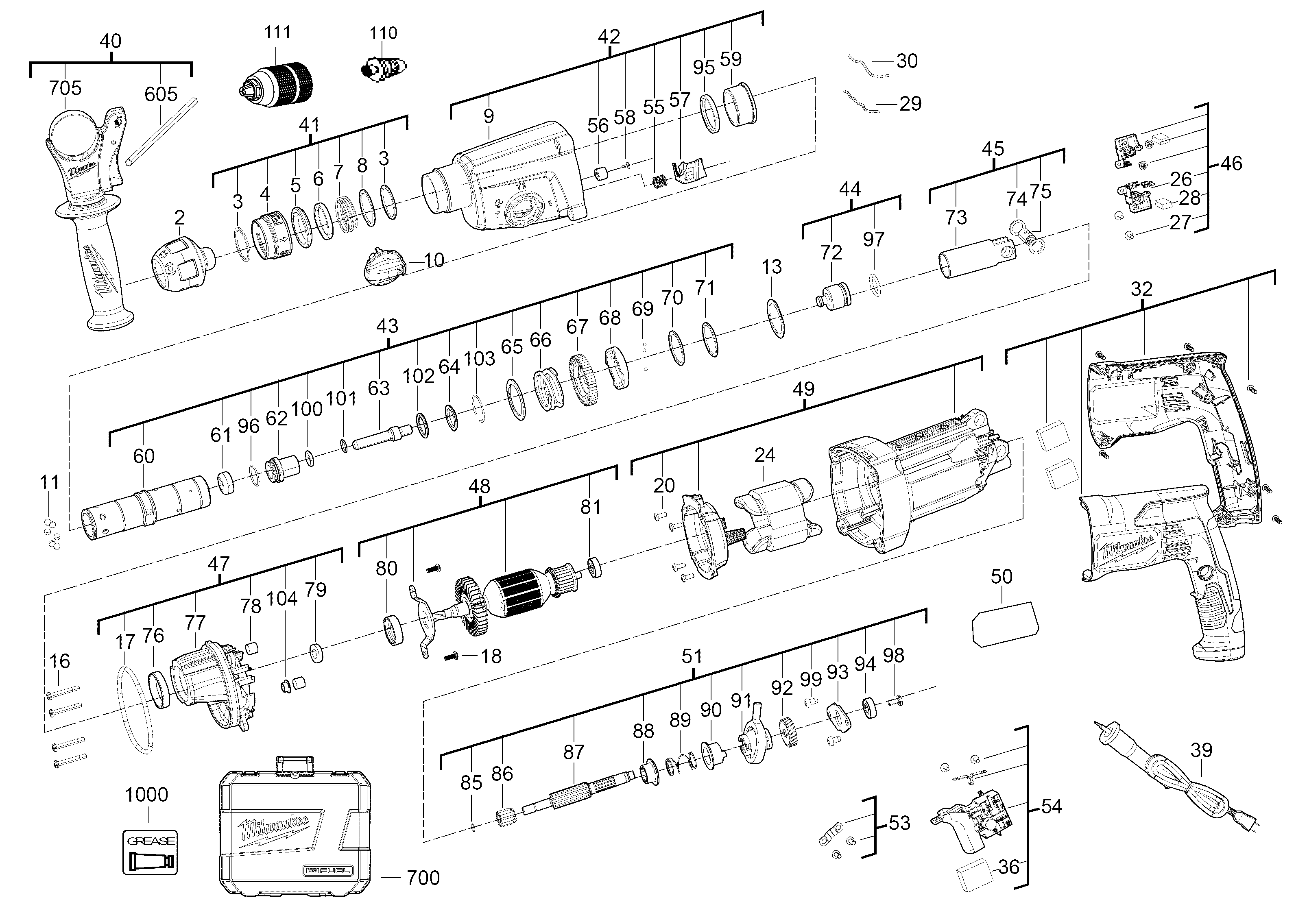 Hier vindt u alle beschikbare onderdelen en tekeningen van de 'Milwaukee 4000452619 ( PH27X )'. Vanaf hier kunt u direct alle gewenste onderdelen bestellen. Vele onderdelen moeten bij de fabrikant besteld worden, dit duurt afhankelijk van het merk, één tot vier weken. Alle informatie die we hebben, staat op onze website, wij kunnen u geen advies geven over wat u nodig heeft, daarvoor zult u de machine ter reparatie in moeten leveren. Let bij het bestellen op het volgende: