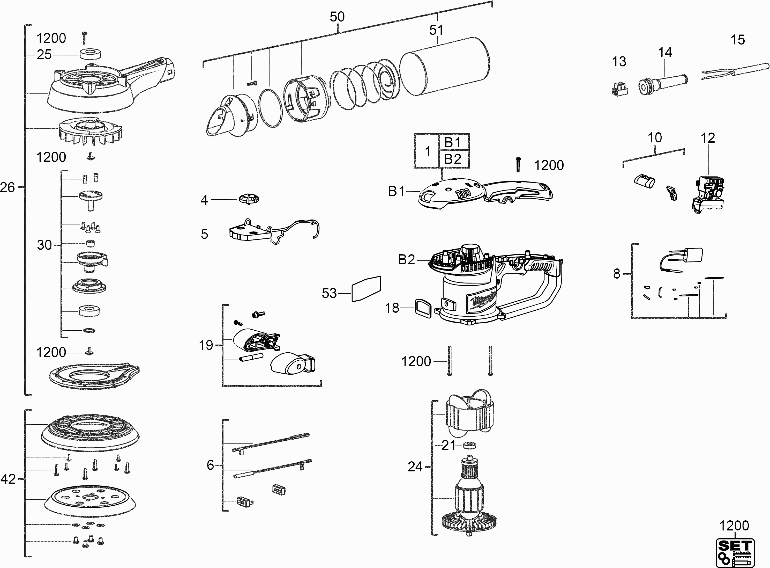 Onderdelen lijst van de Milwaukee 4000431171 ( ROS150E-2 )