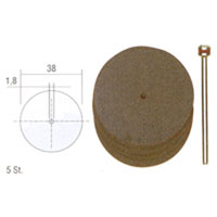 Korund slijpschijven Gemaakt met een speciale lijm. Schijven Ø 22 mm, resp. 38 mm en 0,7 mm dik. Voor het doorslijpen van gelegeerde en ongelegeerde staalsoorten, edelmetalen en non-ferro metalen. Maar ook geschikt voor het zagen van hout en kunststof. Schacht Ø 2,35.