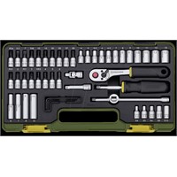 Proxxon fijnmechanische doppenset 1/4'' opname 49 delig. Geleverd in hoogwaardige kunstofkoffer met veilige kliksloten voor gemakelijk sluiten en openen. Doppen van 4mm tot 13mm. Lange doppen 6mm tot 10mm. (voor ver uitstekende draadeinden). Schroefbit met vierkantopnamen voor sleufschroeven, kruiskop schroeven, TX schroeven en binnenzeskantschroeven. Buitentorxbit Gr 4 - 8. kardangewricht. 2 verlengstukken. Schroefgreep met vierkant. Tevens 5 inbussleutels haaks Gr 1,25 - 1,5 - 2,0 - 2,5 en 3,0mm. voor overige inhoud zie afbeelding.