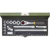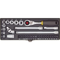 Proxxon fijnmachanica doppenset 32 delig in zeer stabiele gelaste stalen kist, duurzaam gemoffeld. Met sterk kunststof interieur. met 1/4'' micro ratel. Doppen van 5 - 13 mm. Verlengstuk van 50, 100 en 150 mm. Bouten en moeren worden stevig vast geklemd door de kracht van de magneet in de doppen. 17 standaard bits (25 mm) gemaakt van hoogwaardig gelegeerd speciaal staal. Adapter voor zeskant / vierkant. Overige inhoud zie afbeelding.