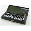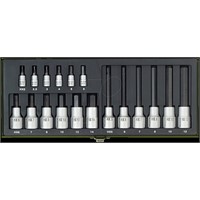 Proxxon inbusschroevenset 18 delig geleverd in zeer stabiele gelaste stalen kist, duurzaam gemoffeld. Met sterk kunststof interieur. met 1/4'' vierkant opname, aandraaimoment tot 25Nm. Maat 2mm tot 6mm. Met 1/2'' vierkantopmane, voor aandraaimomenten van 25 tot 210Nm. Maat 6mm tot 14mm (korte uitvoering 55mm) en maat 5 tot 12 (lange uitvoering 100mm). Voor overige inhoud zie afbeelding.
