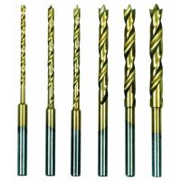 HSS spiraalborenset met centreerpunt Ø 1,5 - 2,0 - 2,5 - 3,0 - 3,5 - 4,0 mm voor nauwkeurig aanboren van hout en kunststof ook voor non-ferro metaal, staal en RVS. Titaanlaag vermindert wrijving en verhoogt de standtijd schacht 0/ 3.0 mm 6 delig