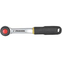 Standaard ratel 3/8". Voor veelvoudig gebruik ! Met omschakelfunctie direct op het ratelmechanisme. Meerdere van de 52 tanden klemmen gelijktijdig vast en zorgen voor overbrenging van een extreem hoog draaimoment. Verwijderen van de doppen d.m.v. drukknop. Kop en schacht uit een stuk. CrV-staal gesmeed, 2 x vernikkeld en matverchroomd. Handvat uit olie- en zuurbestendig neopreen met ophangoog.
